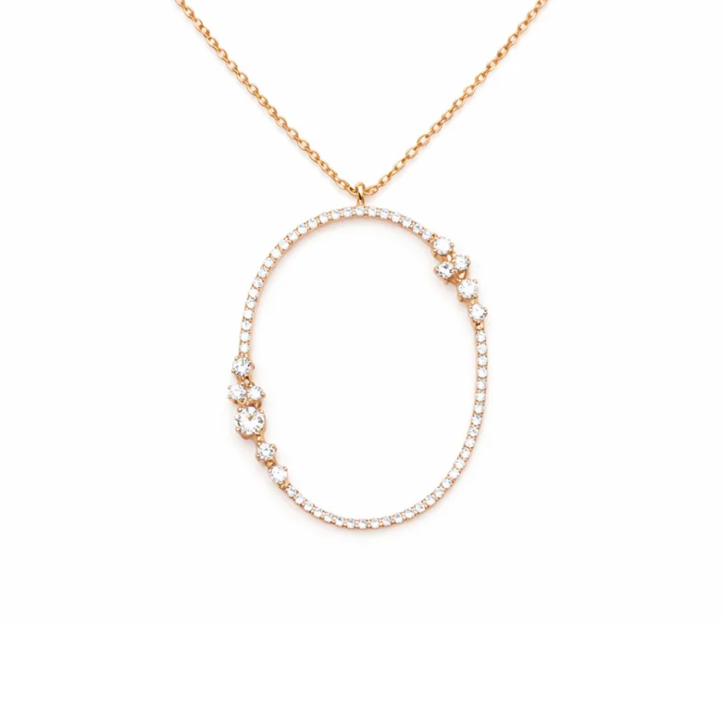 Okside Gümüş Tüy Formlu Pırlanta Taşlı Altın Zincir Kolye