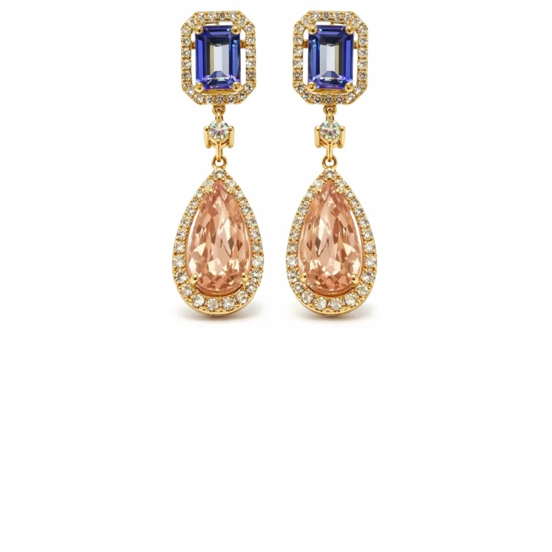 Ametist Taşlı Rose Altın ve Pırlanta Detaylı Sallantılı Küpe