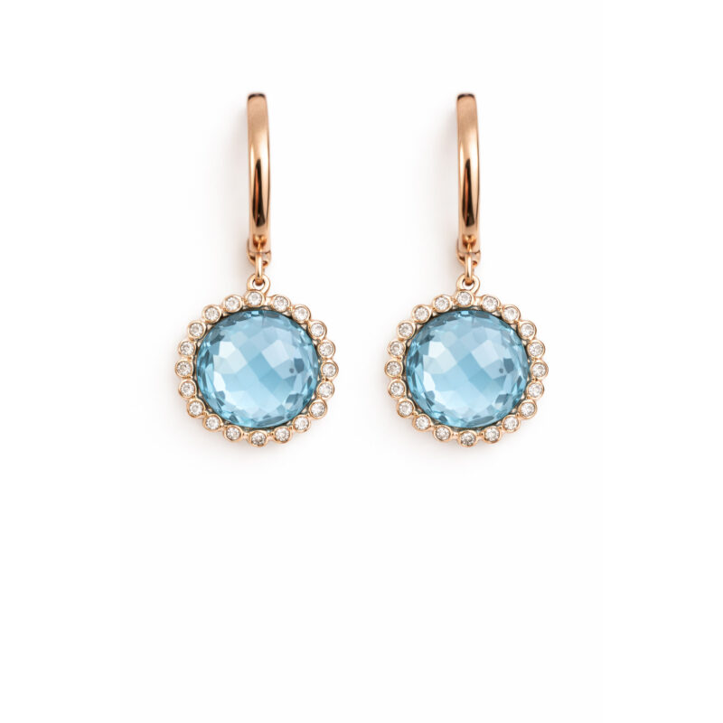 Swiss Blue Topaz Taşlı, Pırlanta Çevreli Altın Küpe