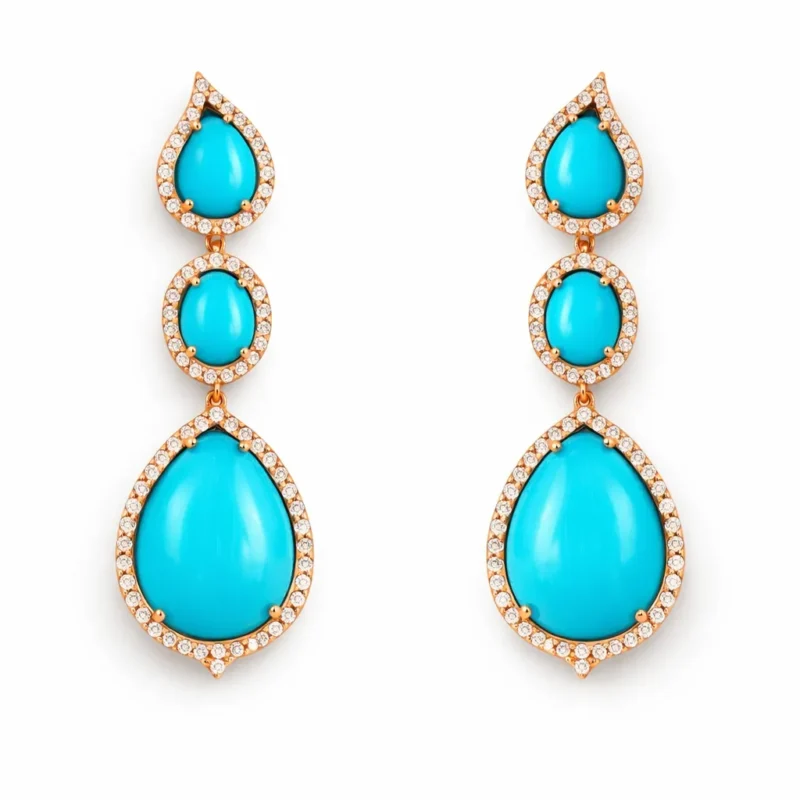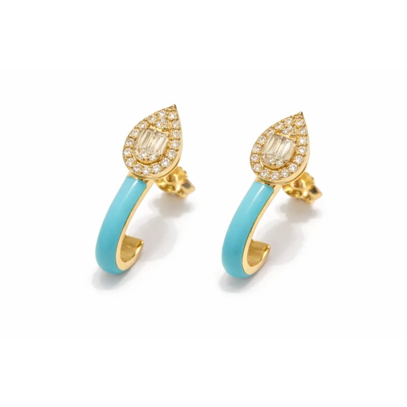 Okside Gümüş Turkuaz Taşlı ve Pırlanta Detaylı Küpe