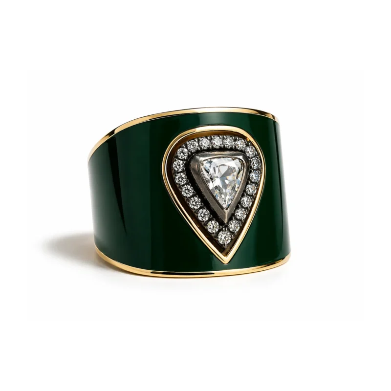 Yeşil Mine Detaylı Üçgen Kesim Pırlanta Taşlı Yüzük