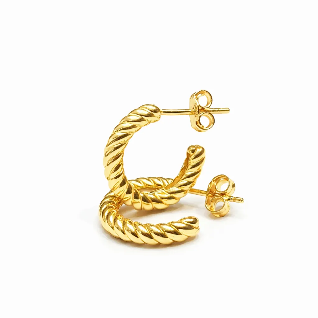 Burgu formuyla tasarlanan bu altın halka küpe, klasik halka modeline hareketli bir görünüm kazandırır. Spiral yüzey detayı ışığı farklı açılardan yansıtarak küpenin parlaklığını öne çıkarır. Günlük kullanıma uygun yapısı ve sade tasarımı sayesinde farklı kombinlerle kolayca uyum sağlayan şık bir aksesuardır.