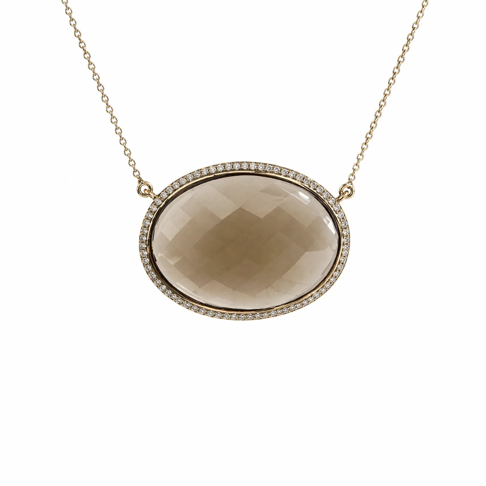 Dumanlı Kuvars ve Pırlanta Detaylı Altın Kolye