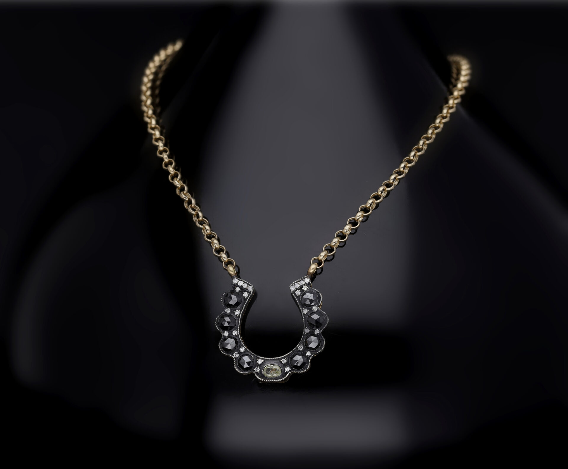 Elmas kesim siyah pırlantalı nal kolye - Image 1