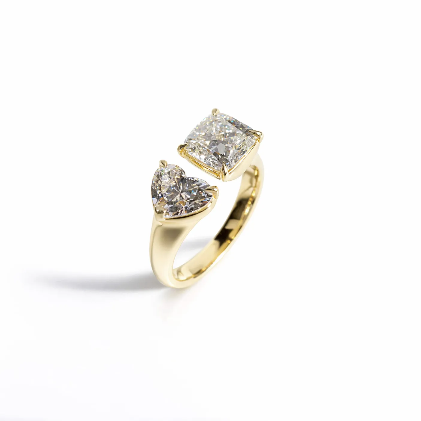 Kalp ve Cushion Kesim Çift Taş CVD Pırlanta Tasarım Yüzük