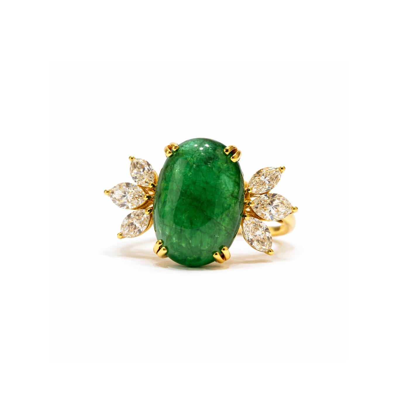 Oval Zümrüt ve Markiz Pırlanta Yüzük