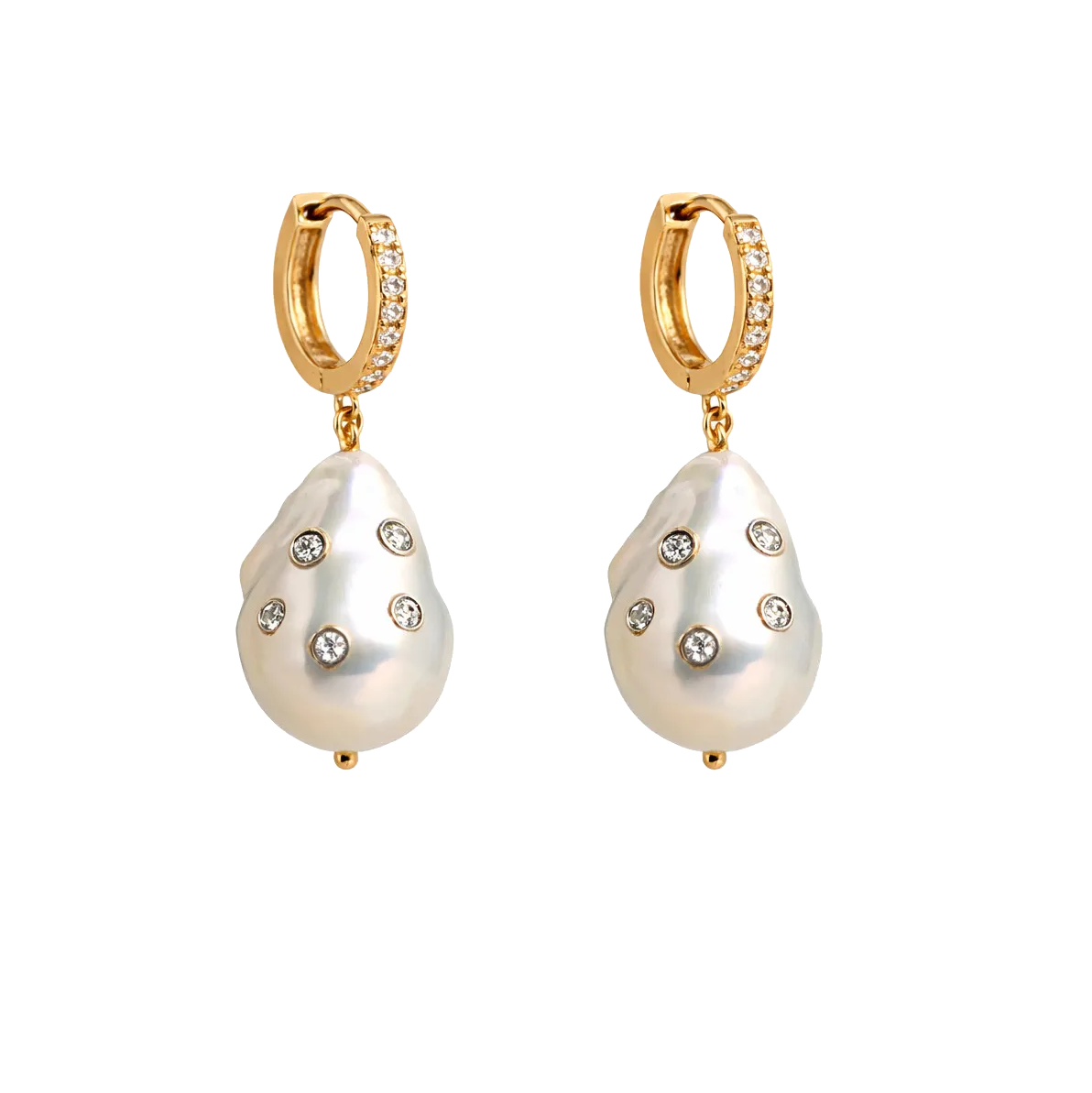 Pırlanta İşlemeli Barok İnci Sallantılı Altın Küpe