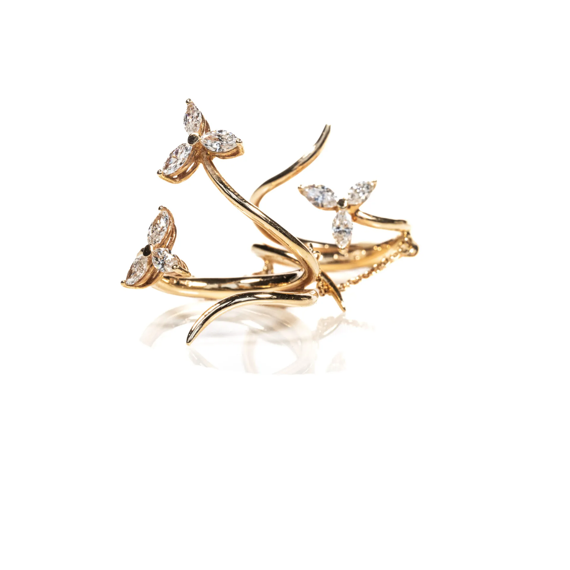 • Doğadan ilham alan zarif tasarımıyla öne çıkan bu pırlanta yüzük, ince dal formu ve çiçek motifleriyle romantik bir görünüm sunar. Rose gold tonunun sıcaklığıyla birleşen pırlanta taşlar, yüzüğe etkileyici bir ışıltı kazandırır. Modern ve sanatsal tasarımı sayesinde hem günlük kullanımda hem de özel anlarda şıklığınızı tamamlar. Estetik detayları ve zarif yapısıyla dikkat çeken bu pırlanta yüzük, stiline özgün dokunuşlar katmak isteyenler için ideal bir seçenektir.