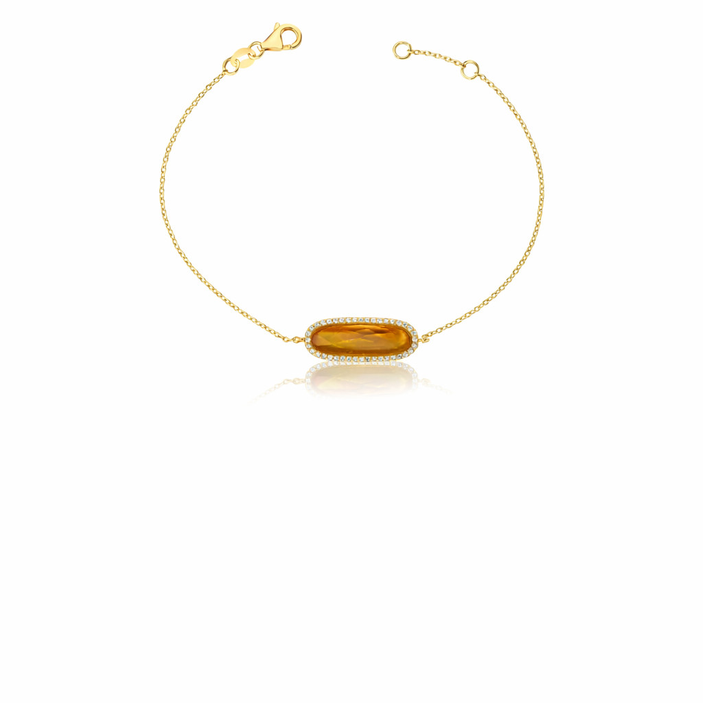 Sarı Altın Bileklik Oval Kesim Citrine ve Pırlanta Taşlı Tasarım