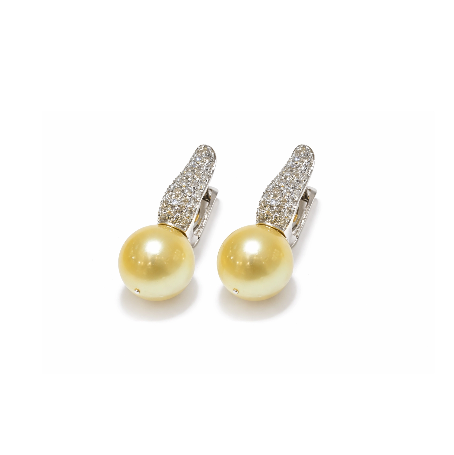 Sarı İnci ve Pırlanta Detaylı Modern Küpe