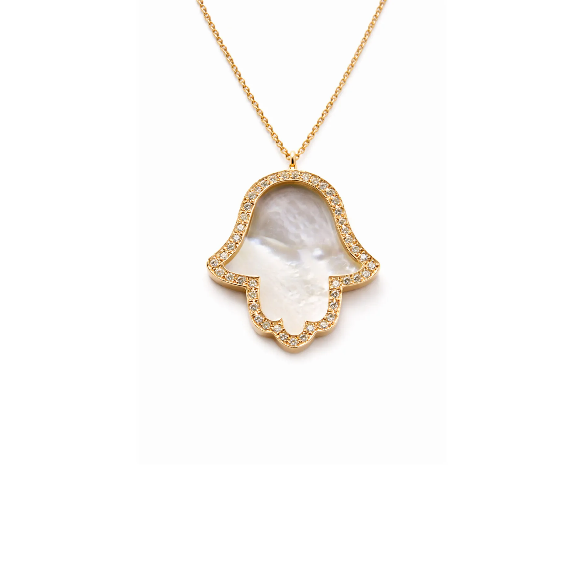 Sedef Taşlı Fatima Ana Eli Altın Kolye - Görsel 1