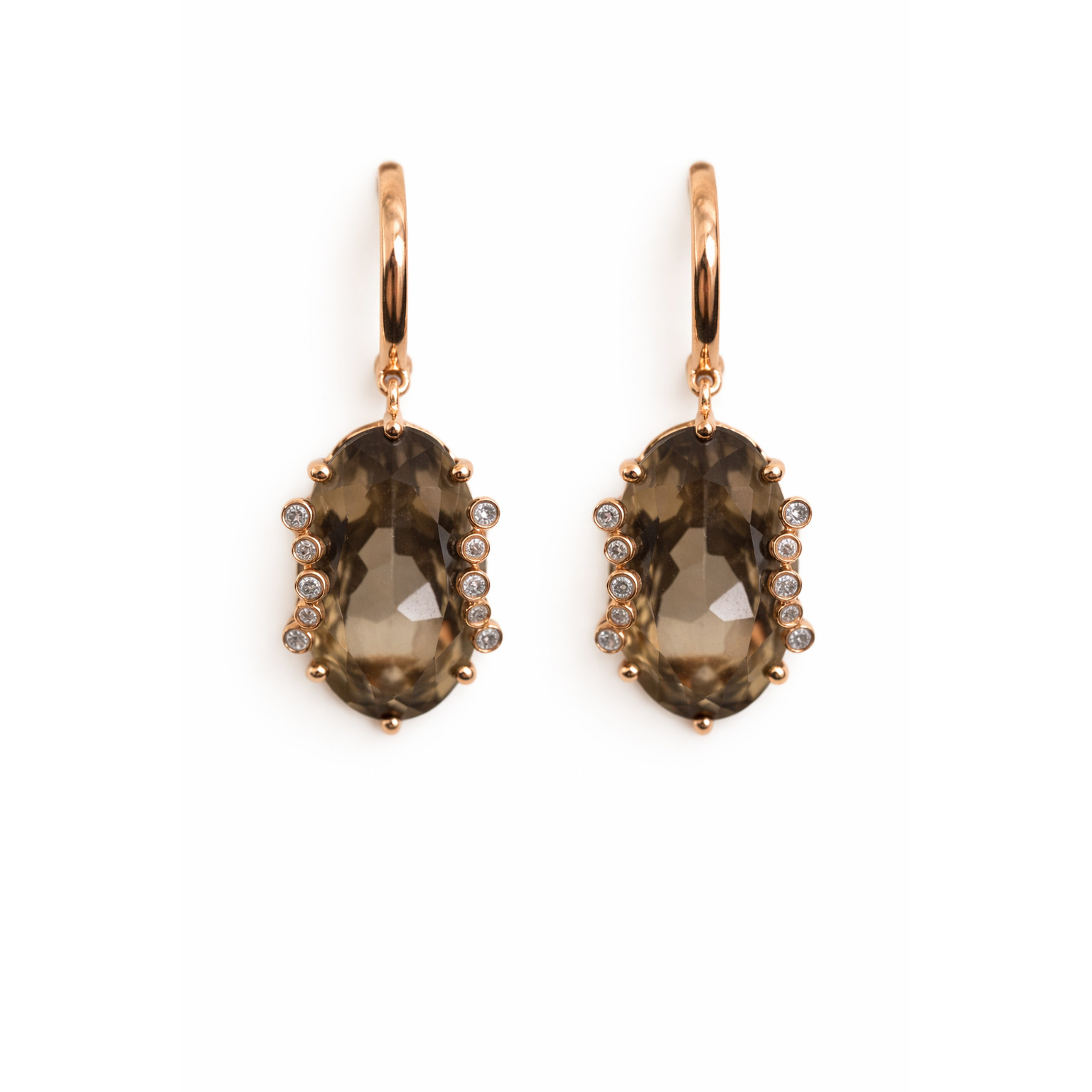 Smoky Quartz Taşlı, Pırlanta Detaylı Altın Küpe