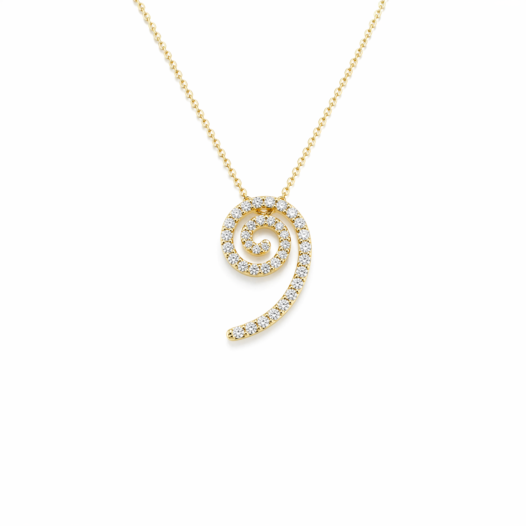 Akıcı spiral formu ile dikkat çeken bu kolye, hareket hissi veren tasarımıyla farklı bir stil sunar. Formun kıvrımlı yapısı, ışığı farklı açılardan yakalayarak pırlanta detayların daha canlı görünmesini sağlar.
