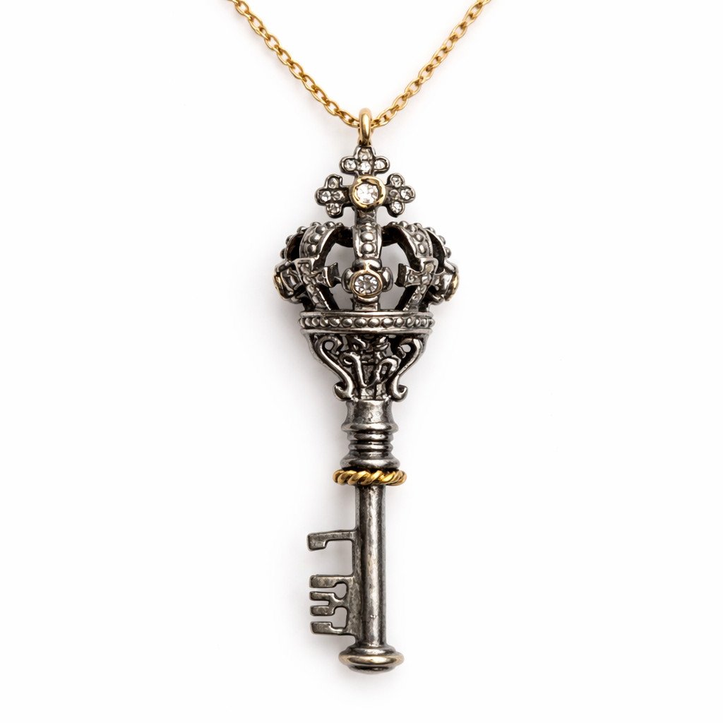 Taç Detaylı Vintage Anahtar Kolye