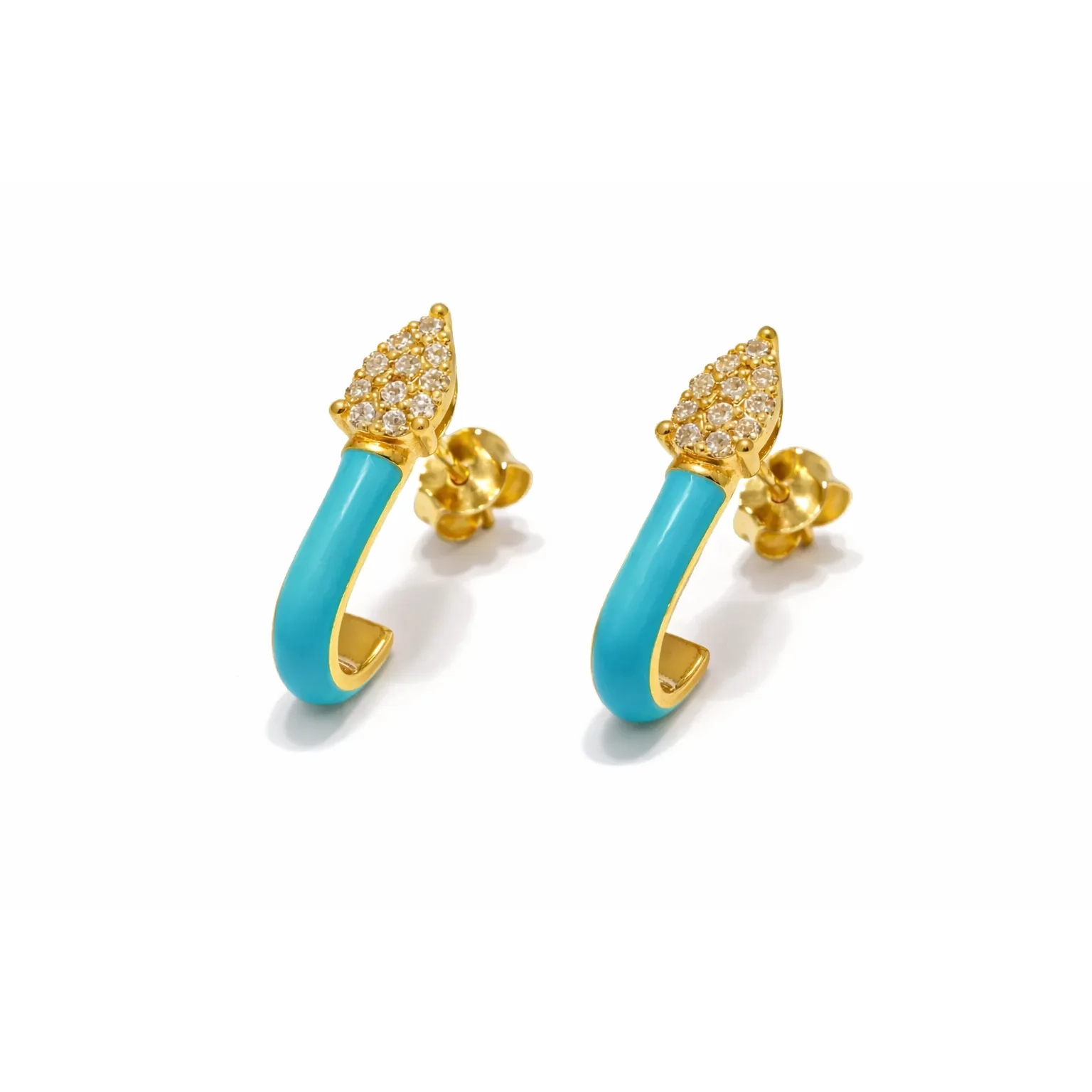 Turkuaz mine yüzey ve pırlanta detayların birleşimiyle tasarlanan bu halka küpe, canlı ve dengeli bir görünüm sunar. Kavisli formdaki mine yüzey kulağı zarif şekilde sararken, üst kısmındaki pırlanta taşlar tasarıma ışıltılı bir vurgu ekler. Günlük kombinlerde renk katmak için ideal bir parça olup, sade stilleri öne çıkarır. Hafif yapısı sayesinde gün boyu konfor sağlar ve farklı tarzlarla kolayca uyum sağlar.