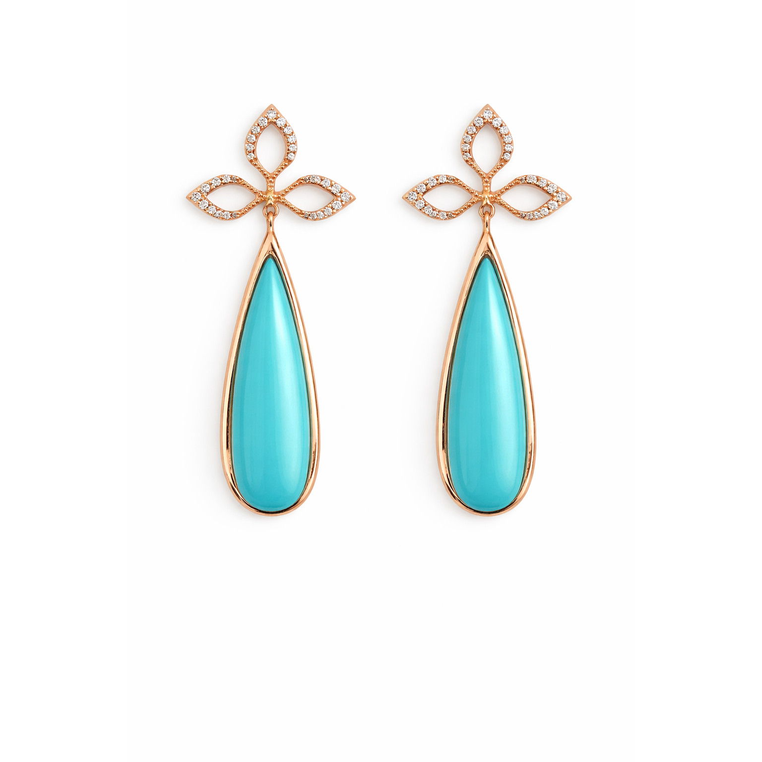 Turkuaz Taşlı Pırlanta Detaylı Rose Gold Uzun Küpe