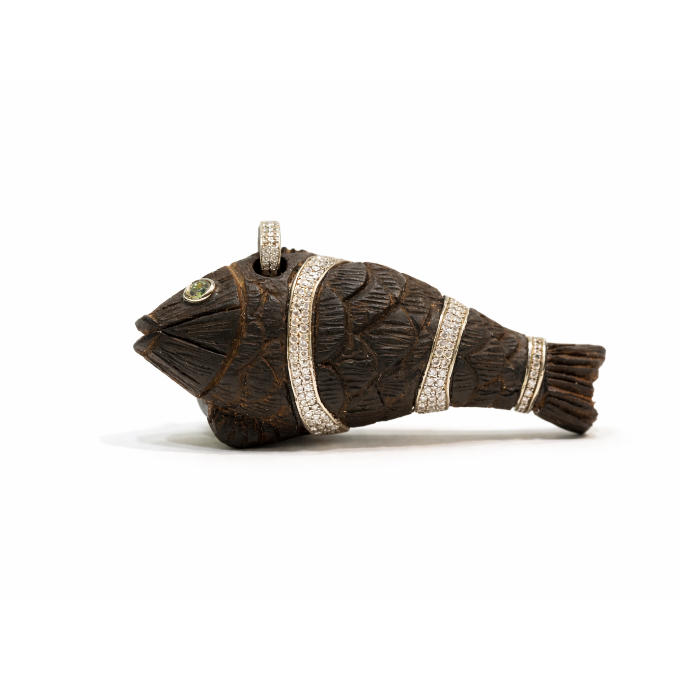 Abanoz Ağacı Balık Formlu Pırlanta Detaylı Kolye