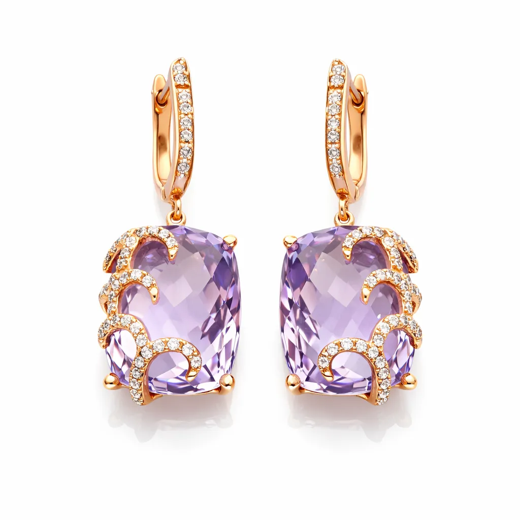 Işıltılı ametist taşı ile dikkat çeken bu küpe, zarif pırlanta detaylarıyla tamamlanarak göz alıcı bir tasarım sunar. Üst kısmındaki halka form, küpeye hareket kazandırırken; büyük kesim ametist taş, ışığı yansıtarak canlı bir görünüm oluşturur. Dalga formundaki pırlanta süslemeler, tasarıma modern ve farklı bir karakter katar. Günlük kullanımdan özel davetlere kadar her stile uyum sağlayan şık bir parçadır.