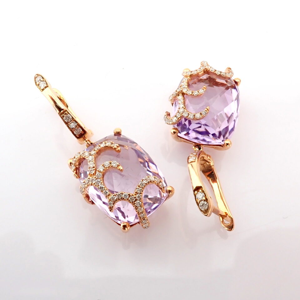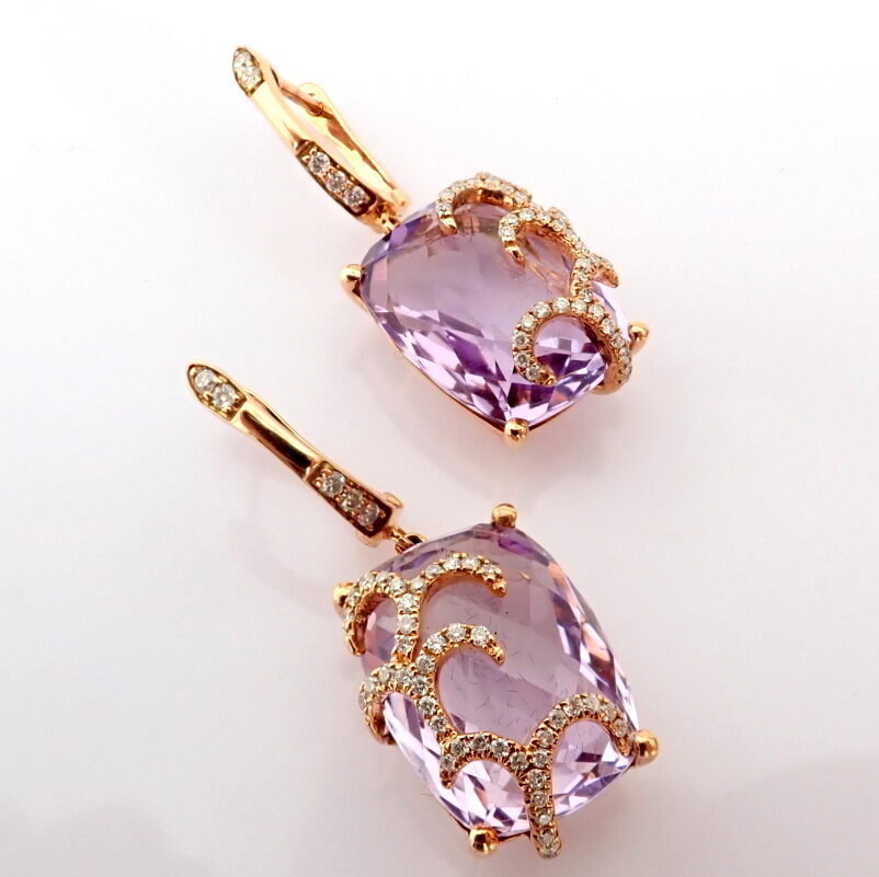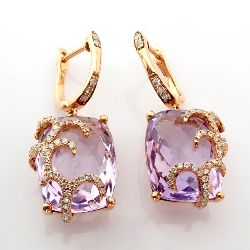 Ametist Taşlı Pırlanta Detay Sallantılı Altın Küpe