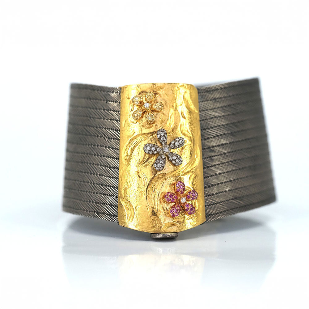 - Çiçeklerde toplam 0,30 ct pırlanta ve 0,36 pembe yakut