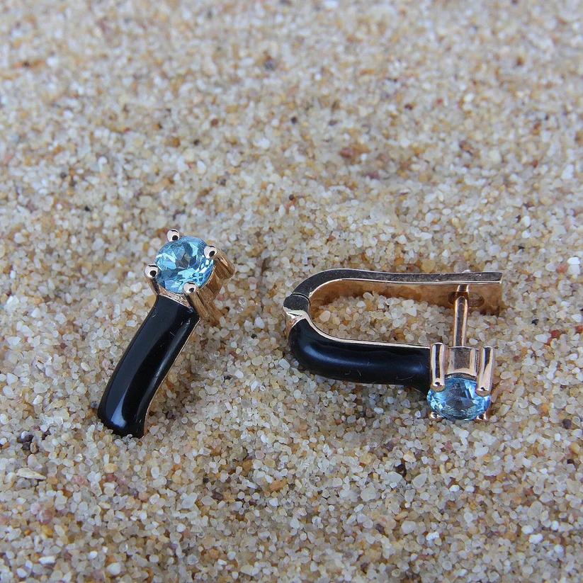 Mavi Topaz Taşlı Mineli Küpe
