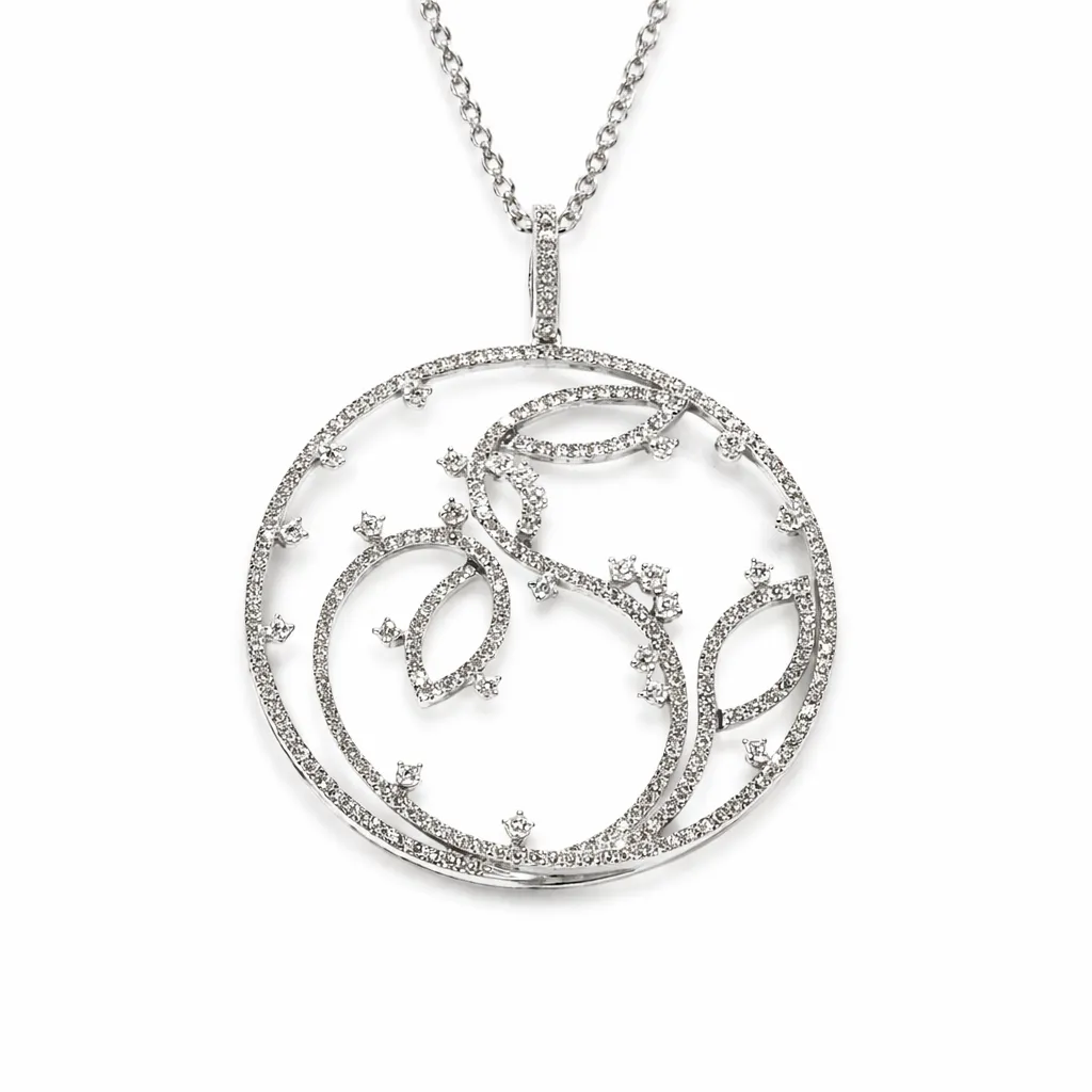 Zarif ve anlam yüklü tasarımıyla öne çıkan bu kolye, elma formundan ilham alan modern bir estetik sunar. İnce işçilikle şekillendirilen beyaz altın yüzey, tamamı pırlantalarla süslenmiş kıvrımlı hatları sayesinde ışığı her açıdan yansıtarak göz alıcı bir ışıltı oluşturur. İç içe geçen organik formlar ve küçük pırlanta detaylar, tasarıma hareket ve derinlik kazandırırken, doğadan ilham alan bu özel parça sofistike bir stil sunar. Hem günlük kullanımda zarif bir dokunuş hem de özel anlarda dikkat çekici bir tamamlayıcı olarak tercih edilebilir.