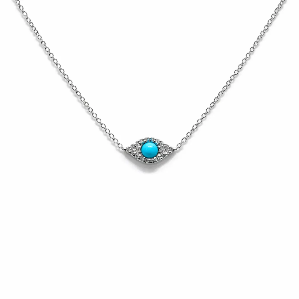Firuze Taşlı Pırlanta Detaylı Göz Altın Kolye
