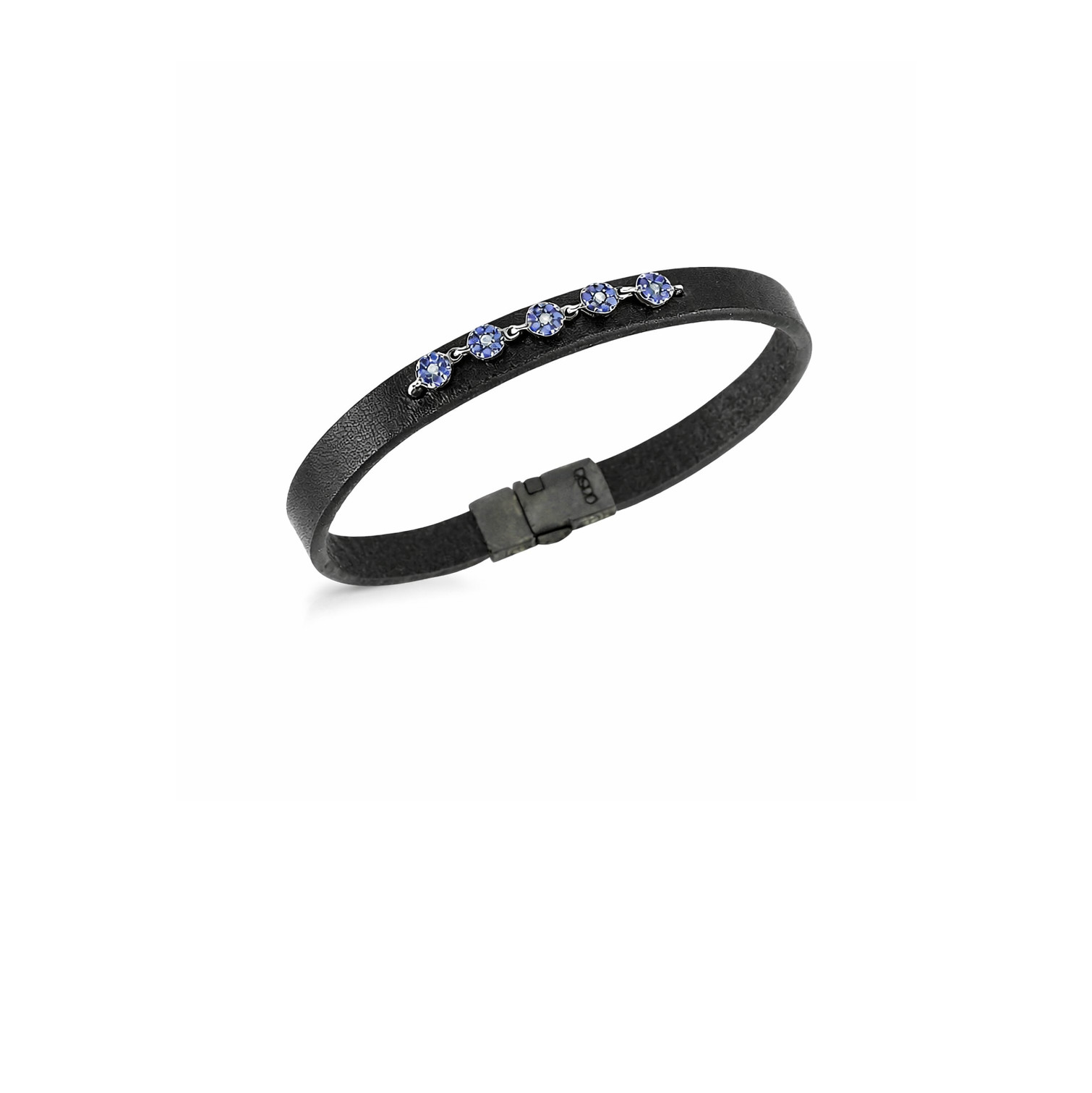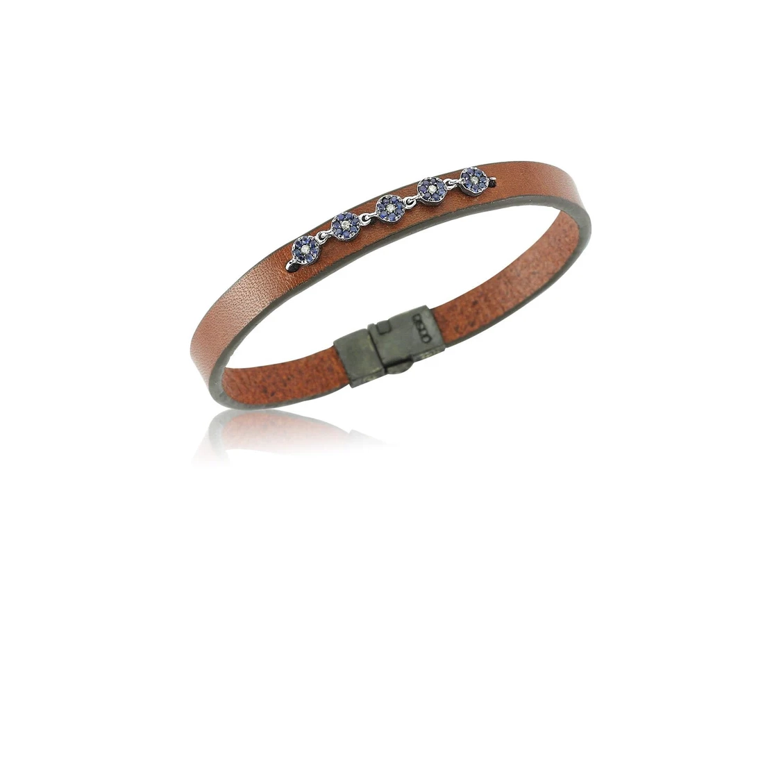 Kahverengi Deri Bileklik Safir ve Pırlanta Taşlı Nazarlık Detaylı
