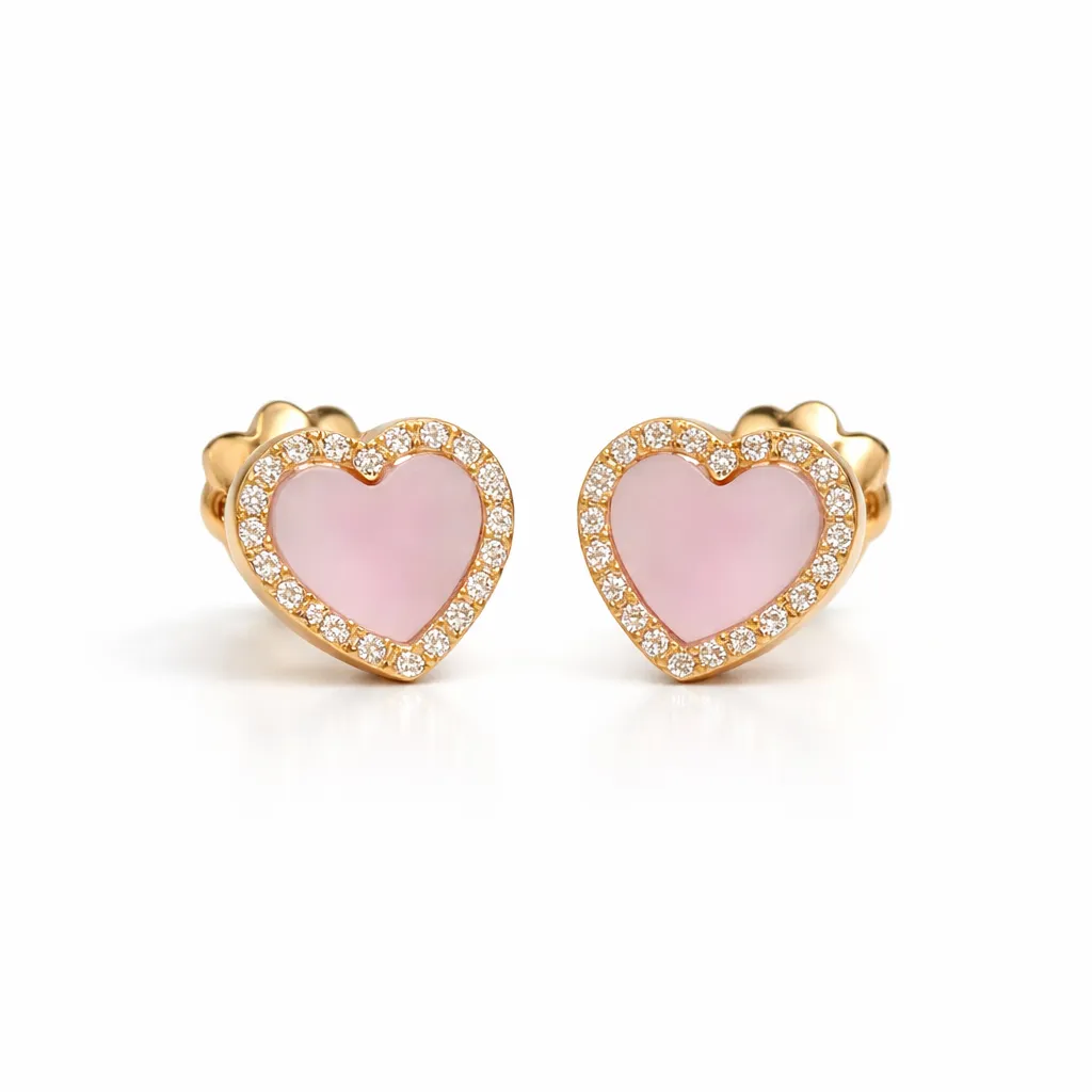 Pembe sedef taşın yumuşak ve feminen tonu, kalp formuyla birleşerek zarif bir görünüm sunar. Etrafını çevreleyen pırlanta detaylar ışığı dengeli şekilde yansıtırken, altın çerçeve tasarıma sıcak bir dokunuş katar. Günlük kombinlere romantik bir hava eklerken, özel anlarda da dikkat çekici bir tamamlayıcıdır.