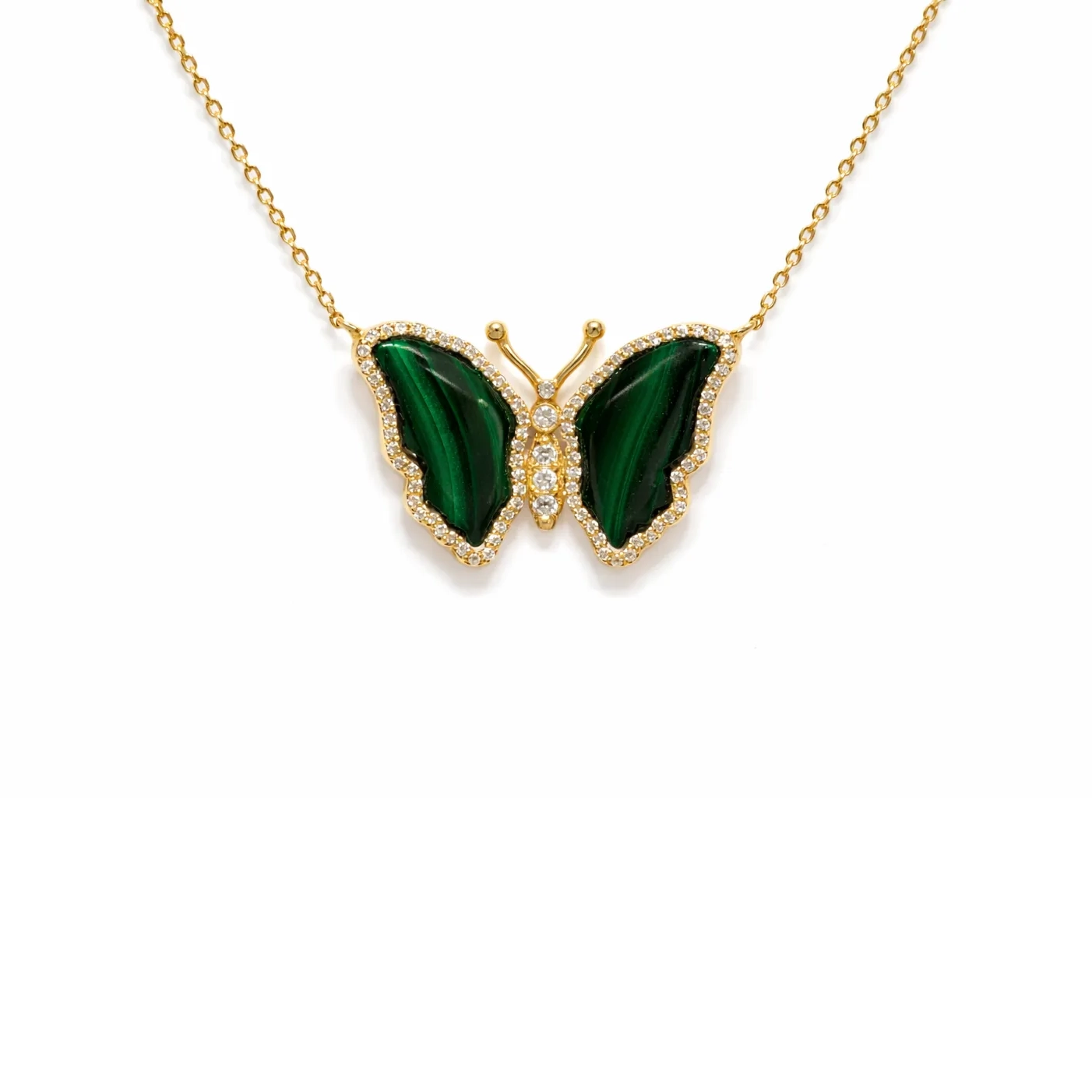 Kelebek Formlu Malakit Kolye – Pırlanta Detaylı Özel Tasarım