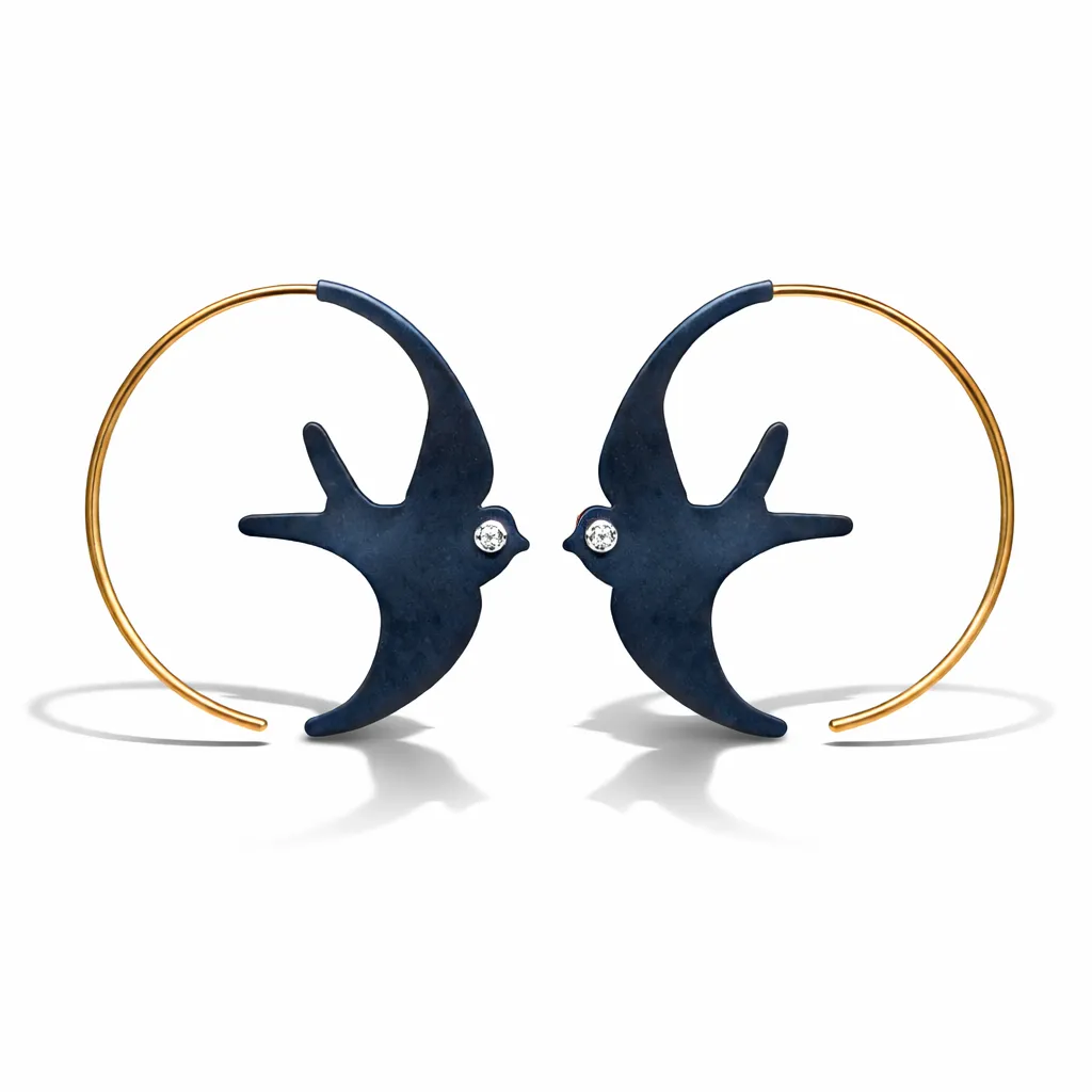 Kuş motifli tasarım sallantılı küpe. Modern ve zarif detaylarıyla günlük stil için şık bir mücevher.