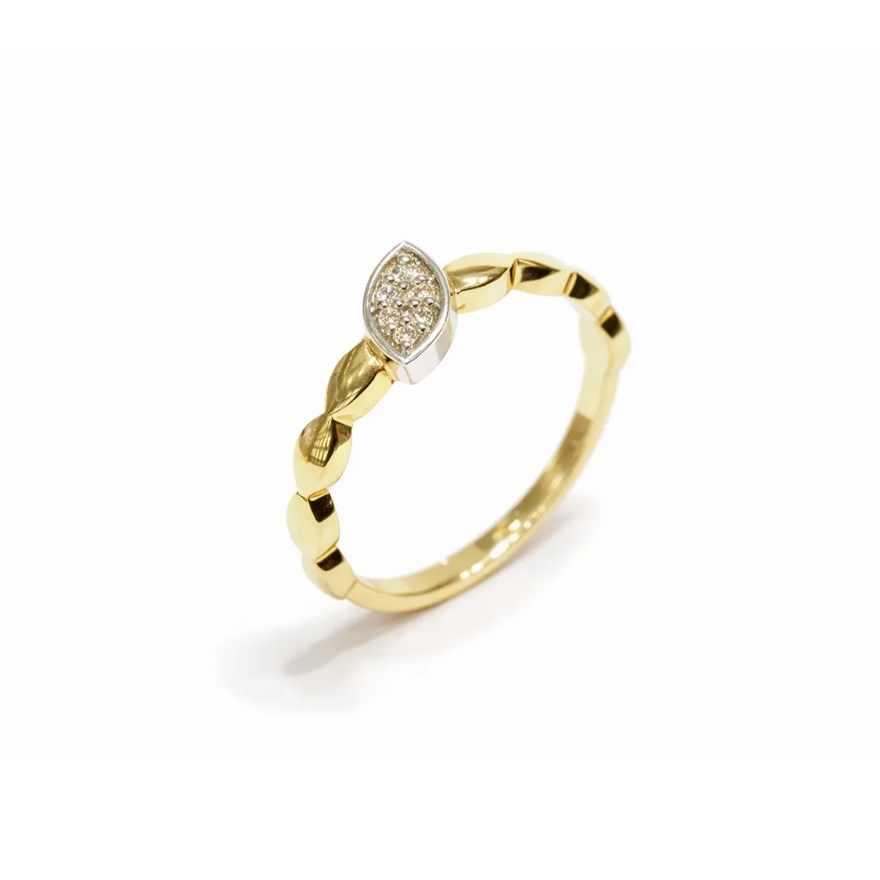Zarif detaylarıyla öne çıkan bu minimal yüzük, merkezde yer alan markiz kesim taş formu ile modern ve sofistike bir görünüm sunar. İnce ve akışkan hatlara sahip altın form, yüzüğe hafiflik ve zarafet katarken günlük kullanım için ideal bir stil oluşturur.