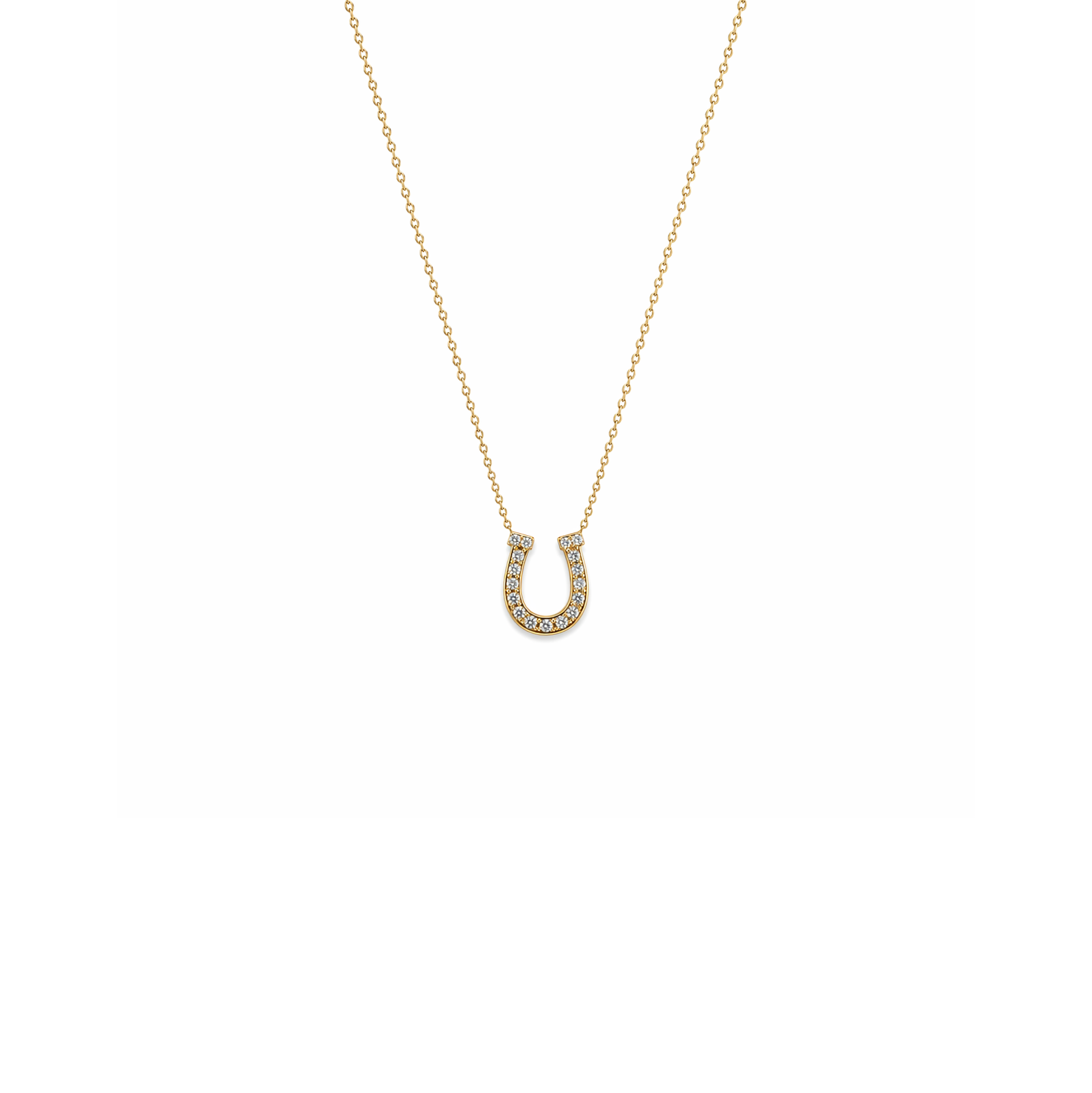 Şansın simgesi nal formundan ilham alan bu zarif kolye, sarı altının sıcak tonuyla pırlanta taşların ışıltısını bir araya getirir. Minimal boyutu ve dengeli formu sayesinde boyunda ince ve şık bir görünüm oluşturur.