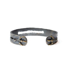 Sade formu ve güçlü detayıyla öne çıkan bu kelepçe bileklik, minimal tasarımın dikkat çekici bir yorumudur. Okside gümüş yüzey üzerindeki dokulu yapı, ortadaki altın çerçeveli pırlanta ile dengeli bir kontrast oluşturur. Fazlalıktan uzak tasarımı sayesinde günlük kullanımda rahatlıkla tercih edilir ve farklı kombinlerle kolayca uyum sağlar. Bilekte net ve temiz bir duruş sunan bu parça, az ama etkili aksesuar tercih edenler için ideal bir seçenektir. Pırlantanın ışığıyla sade stilini öne çıkarmak isteyenler için güçlü bir tamamlayıcıdır.