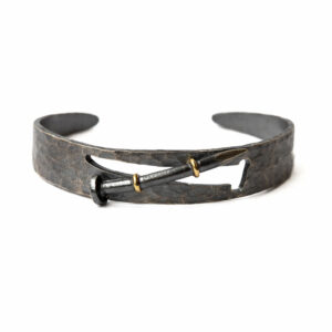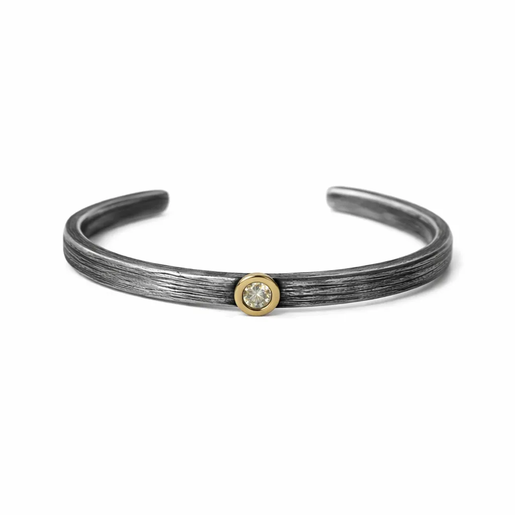 Okside Gümüş ve Altın Pırlanta Detaylı Minimal Kelepçe Bileklik