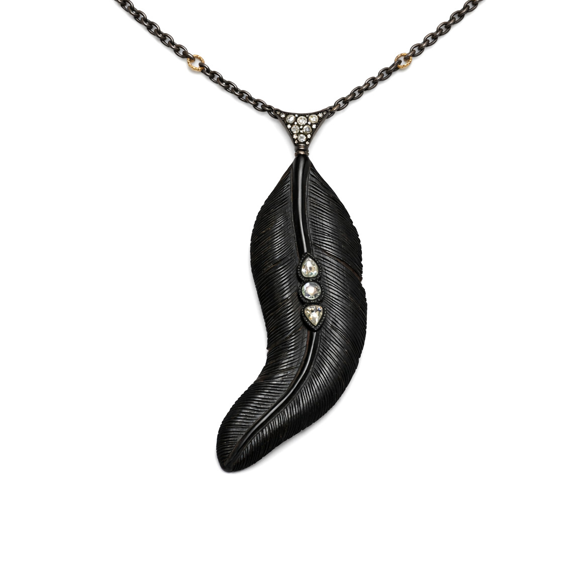 Oltu Taşı Pırlanta ve Elmas Detaylı Yaprak Kolye