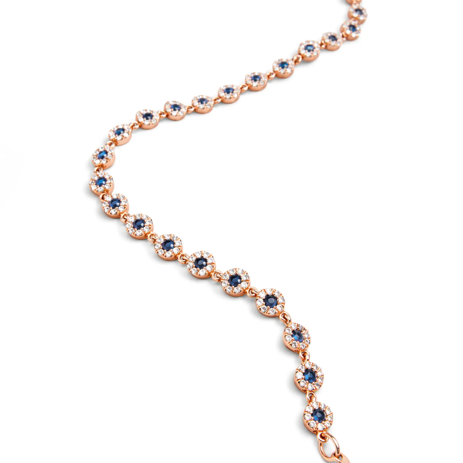 Safir taş ve pırlanta detaylı göz motifli altın bileklik.