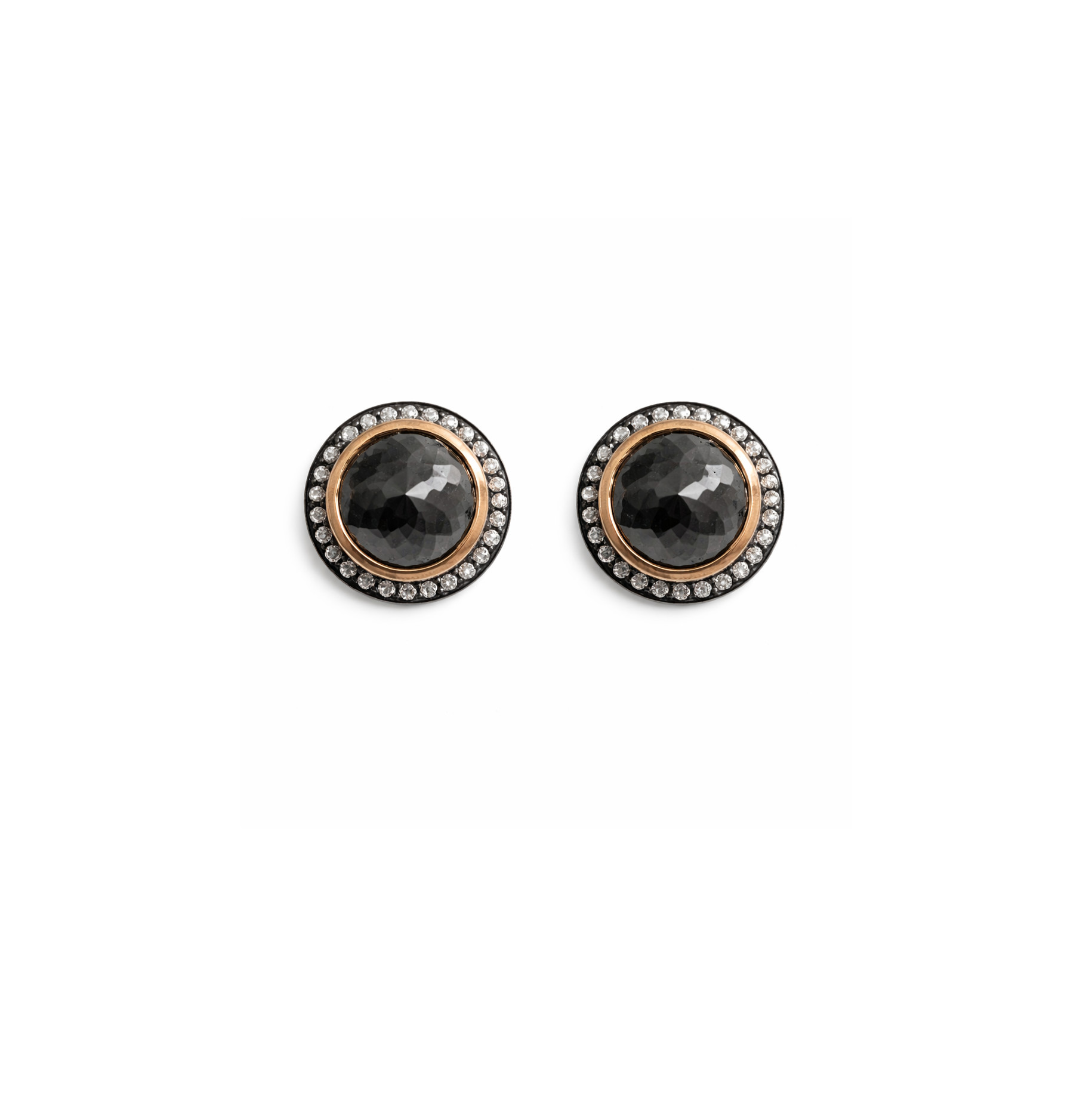 Siyah Pırlanta Merkezli Beyaz Pırlanta Çerçeveli Altın Küpe