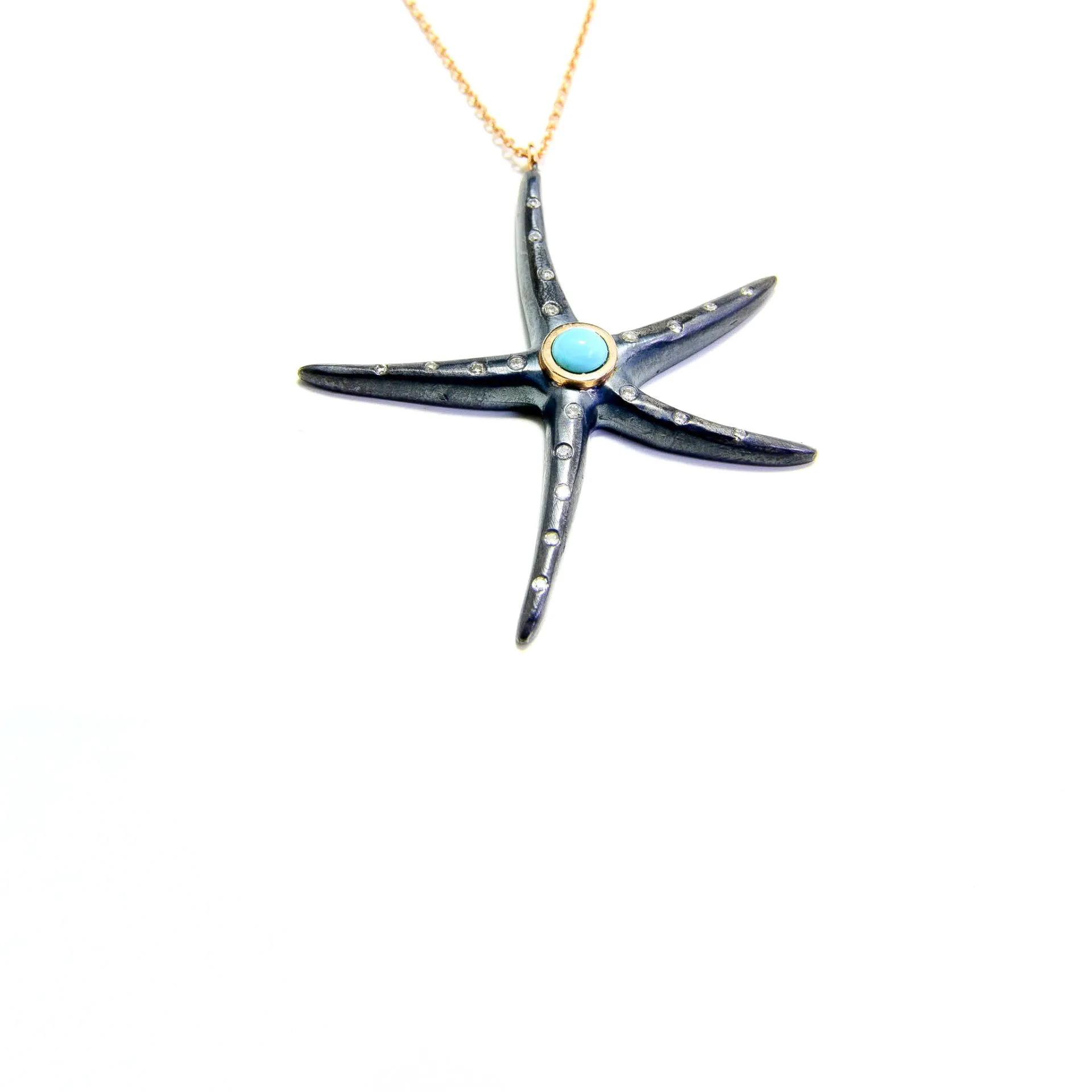 Turkuaz Taşlı Deniz Yıldızı Tasarım Kolye