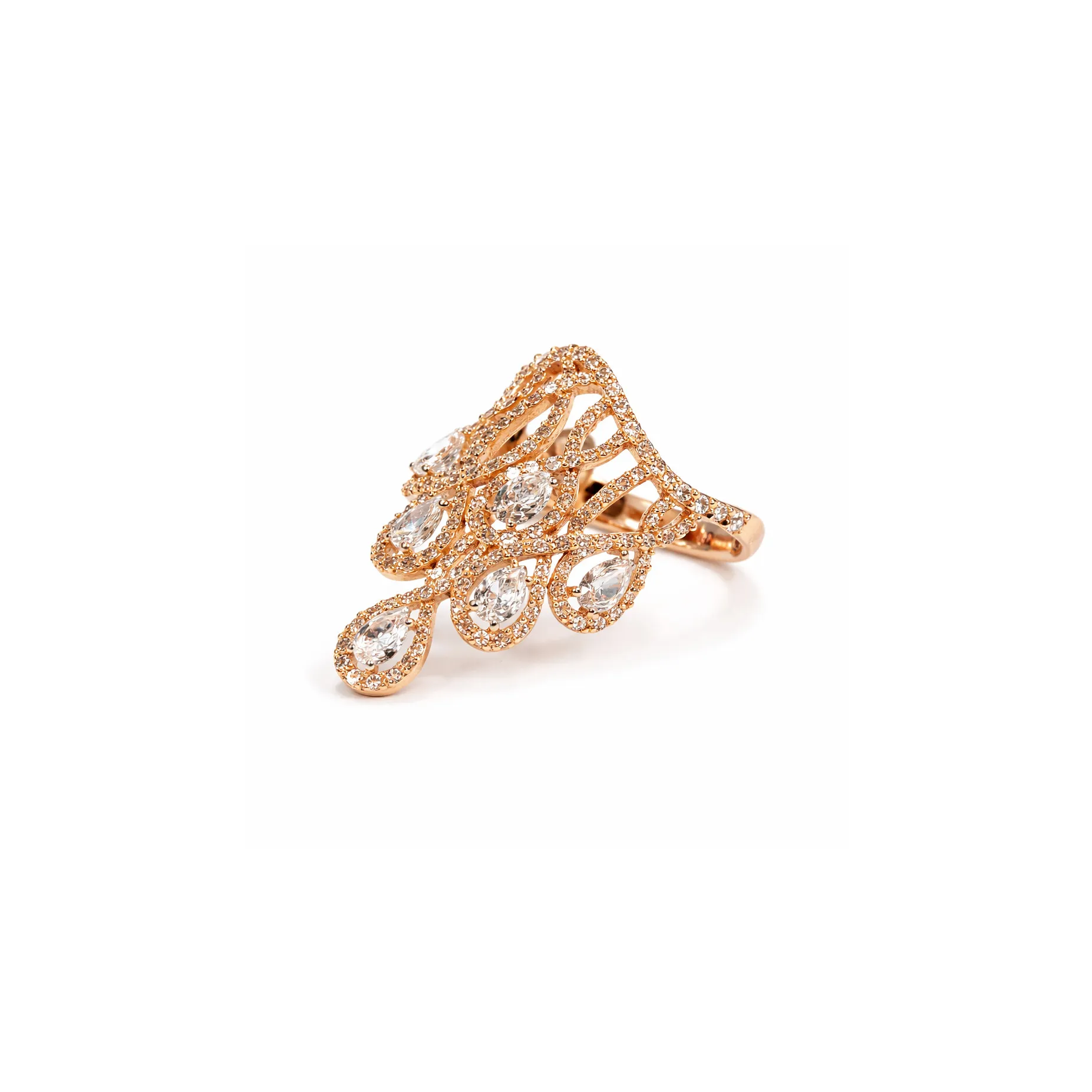 Doğadan ilham alan zarif yaprak formu ve pırlanta taş detaylarıyla tasarlanan bu altın yüzük, modern ve şık bir görünüm sunar.