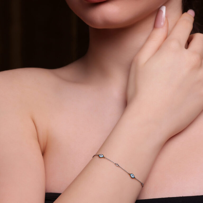 Nazar Boncuğu Detaylı Geometrik Altın Bileklik