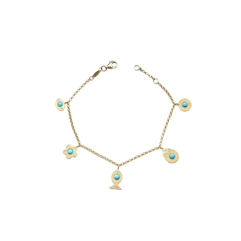 Turkuaz Taşlı Nazar Motifli Altın Bileklik