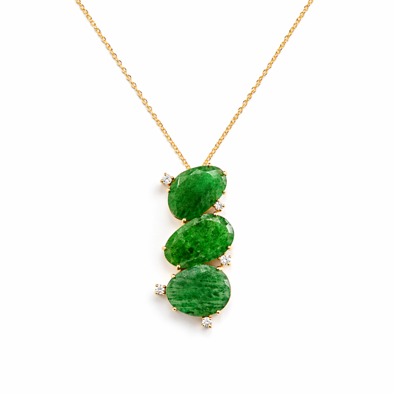 Aventurin taşlı pırlanta detaylı altın kolye