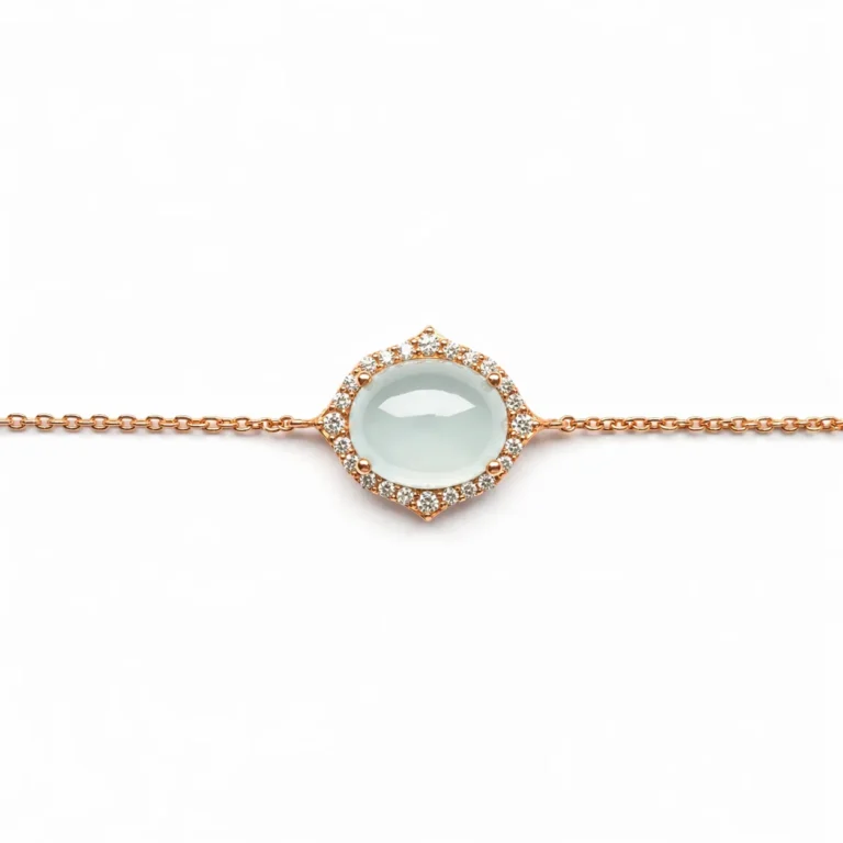 Milky Akuamarin ve Pırlanta Taşlı Rose Altın Bileklik