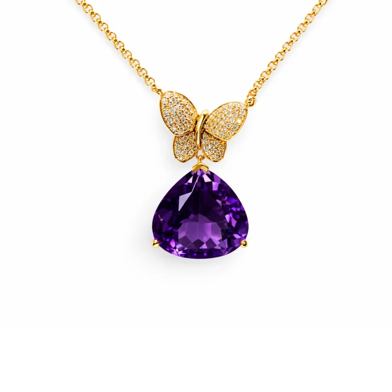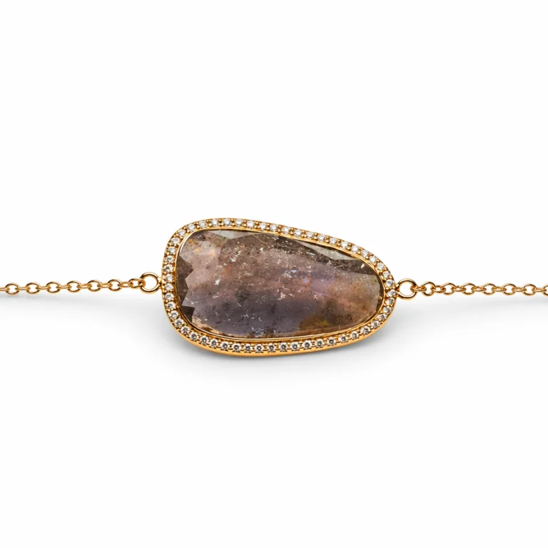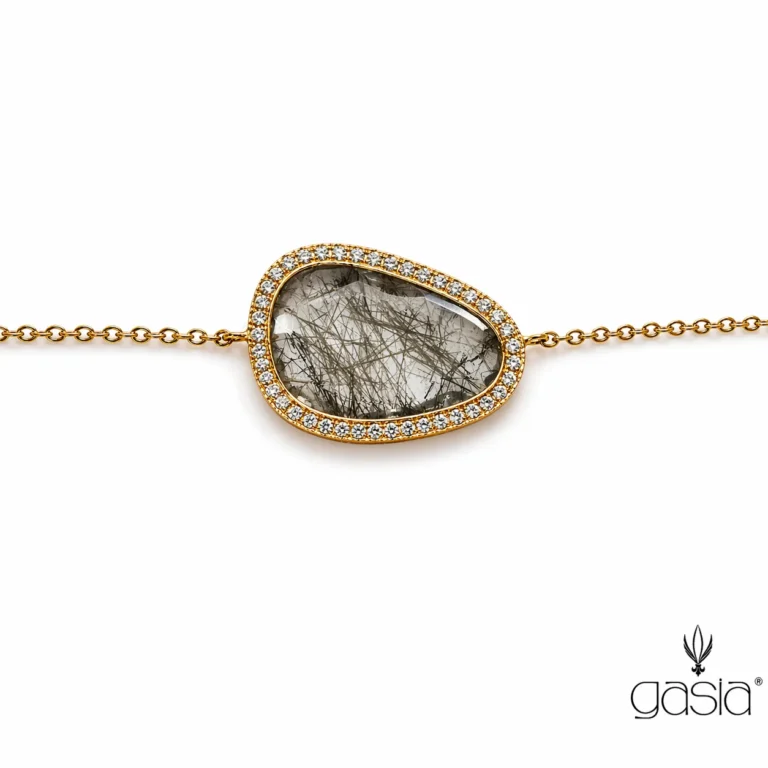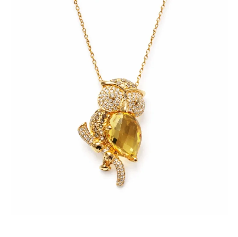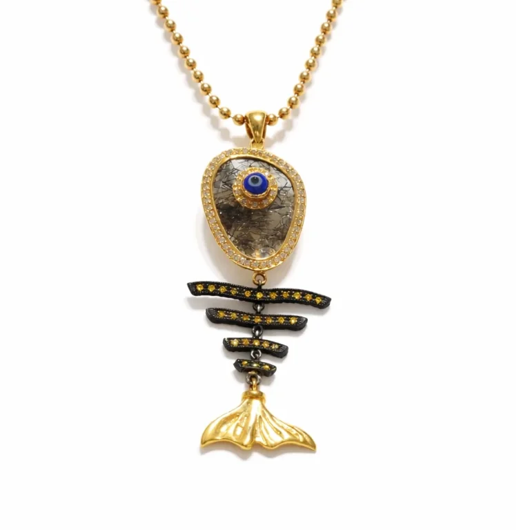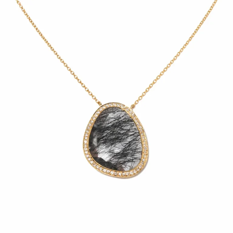 Rutil Kuvars Taşlı Pırlanta Detaylı Altın Kolye