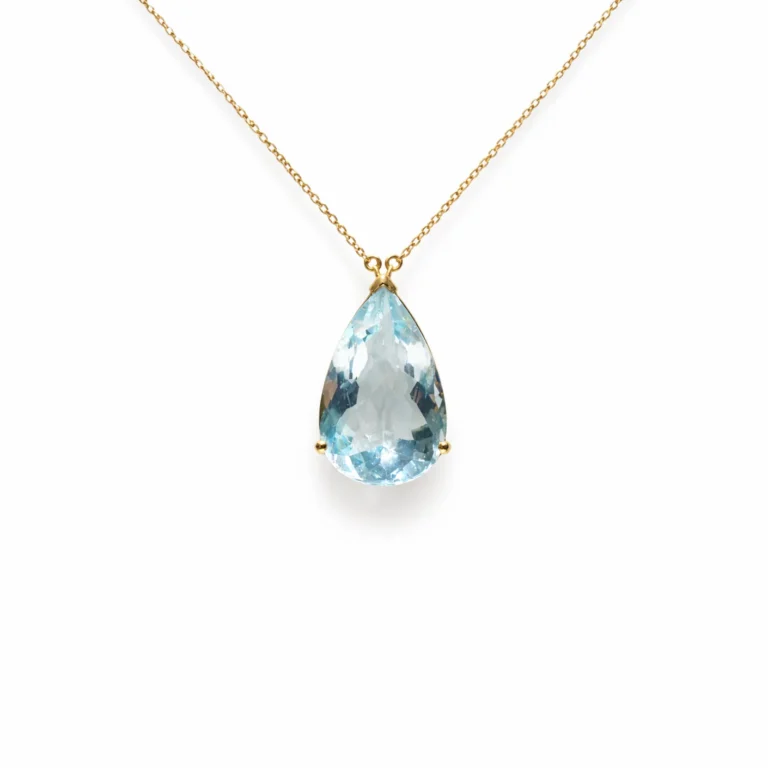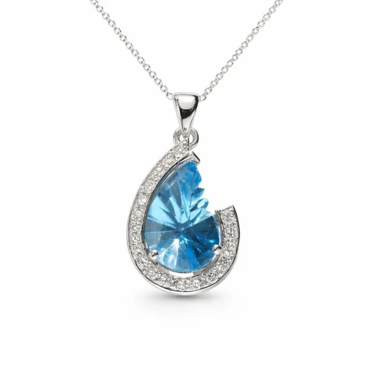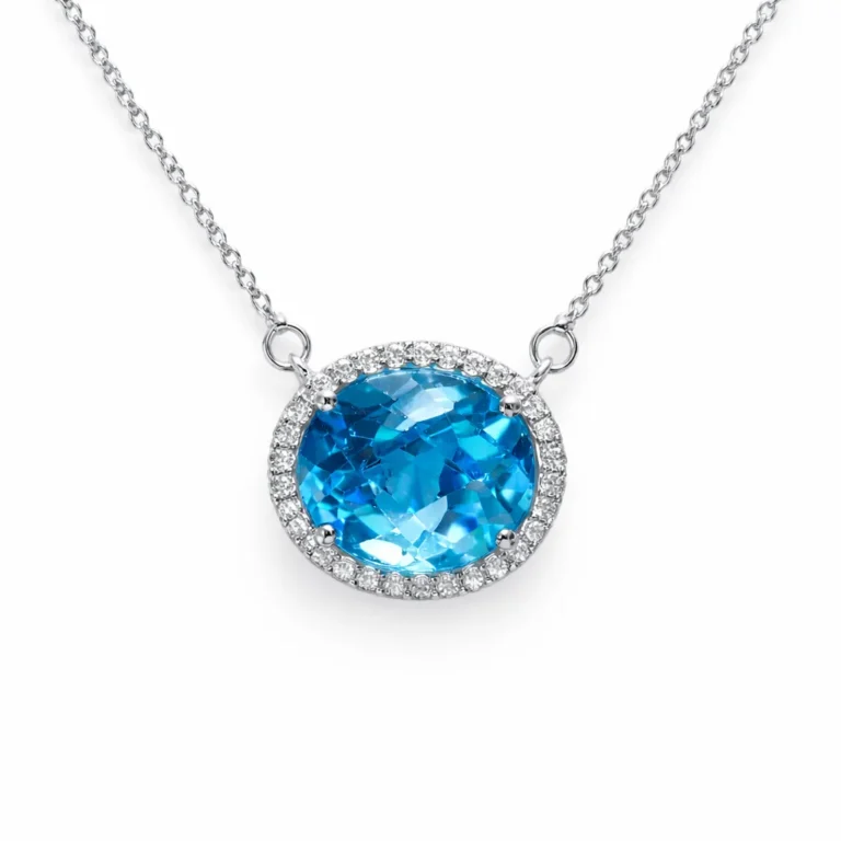 Mavi Topaz ve Pırlanta Detaylı Beyaz Altın Kolye