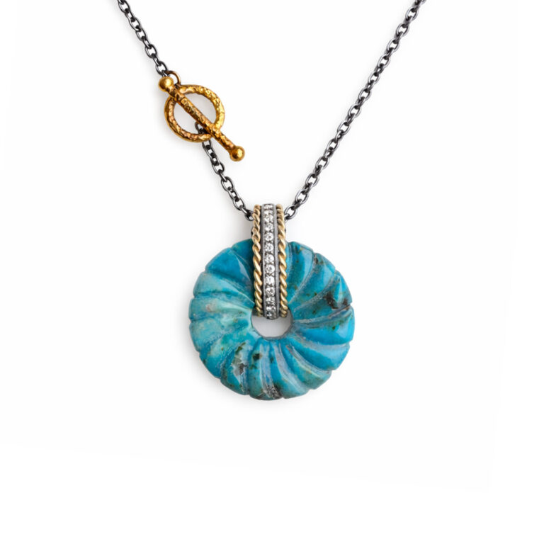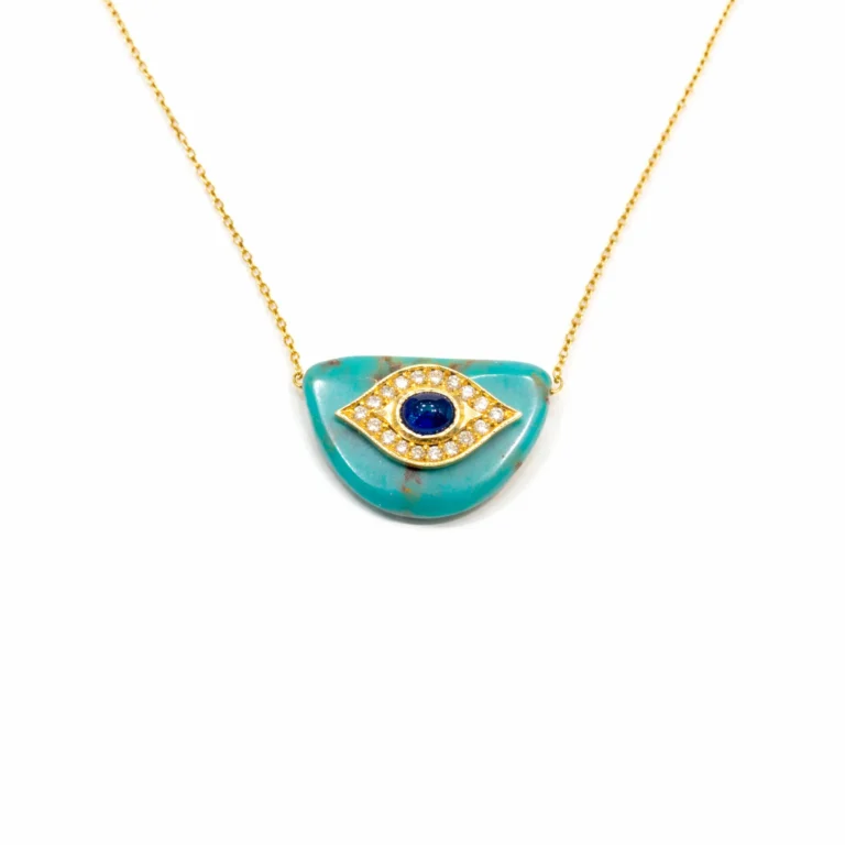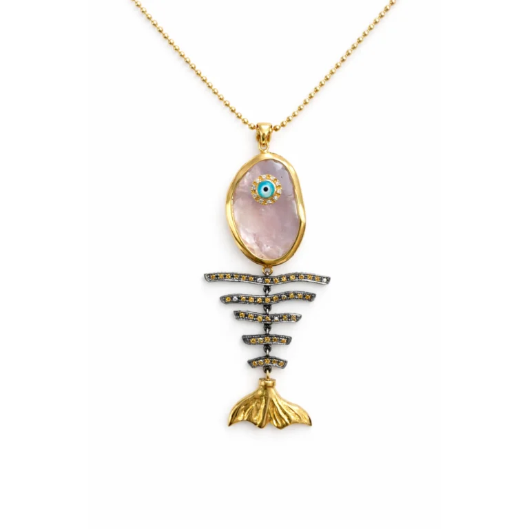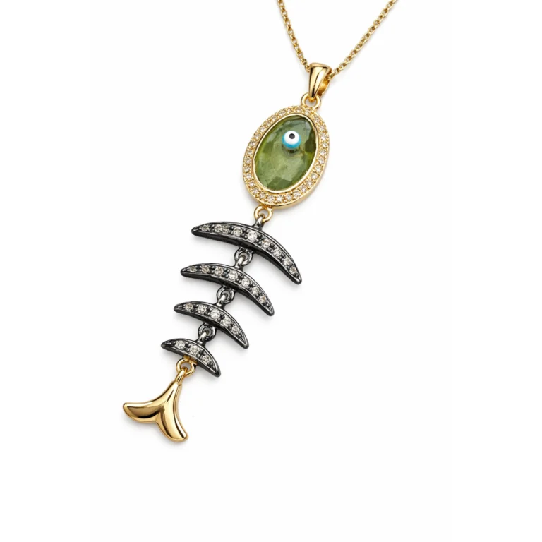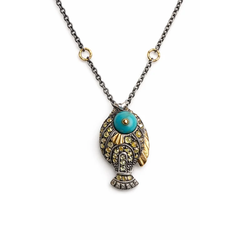 Firuze Taşlı Vintage Balık Motifli Kolye