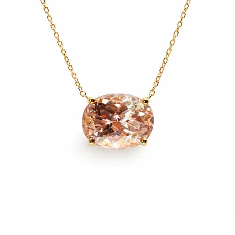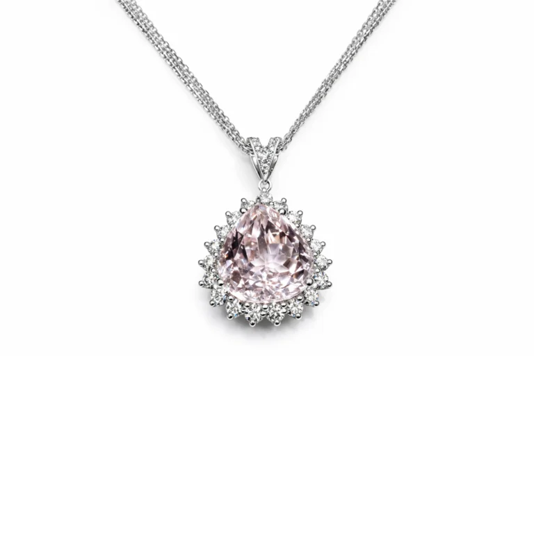 Pırlanta Detaylı Damla Kesim Kunzit Taşlı Beyaz Altın Kolye