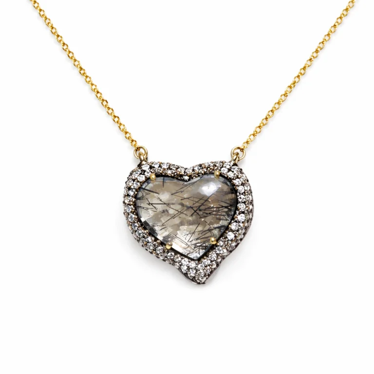 Rutil Kuvars ve Pırlanta Detaylı Kalp Altın Kolye