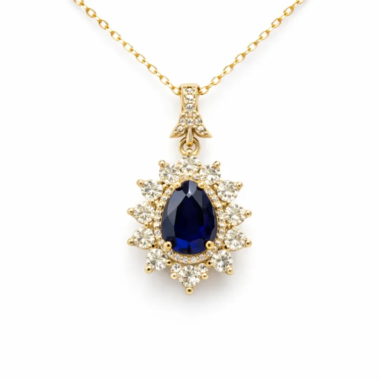 Mavi Topaz Pırlanta Çerçeveli Yuvarlak Kolye